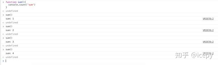 在这里,我仅仅是想知道 sum 函数被调用了多少次,你也可以使用 console.countReset 来重置它。