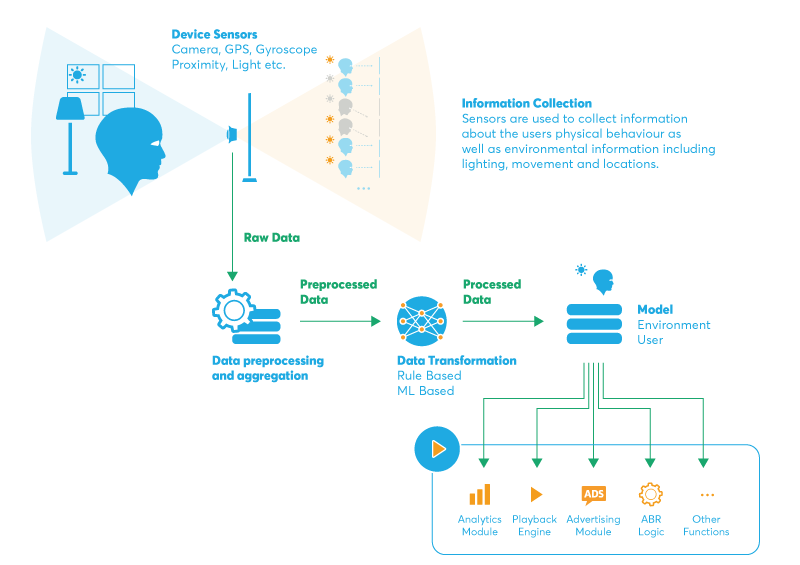 那么,这个神奇的「读脸」技能究竟是怎么实现的呢?简单来说,就是使用摄影镜头,实时监测画面中人物的脸部位置,搜集眉、眼、鼻、嘴和脸部轮廓的变化数据,然后透过机器学习训练出实时更新的算法模型,进而判断出他们的情绪状态。在 Bitmovin的影片感知功能中,系统在完成判断之后,还会驱动各个功能模块进行动作,例如播放调整、控制广告等等。利用镜头「读脸」的心情辨识,在便利和隐私之间能找到双赢的方法吗?尽管心情辨识技术看起来是如此有用,但似乎很少有人会认为,情绪感知是一个未满足的需求。透过很多其他的解决方案或者技术路径,似乎都可以做到差不多的预测使用者喜好的水平。但因为这样而迎来一个连表情都被实时监控的世界,实在有点得不偿失了。