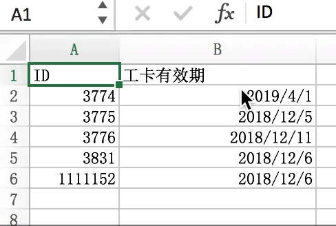 小姐姐们的操作流程是先用我们的系统导出一份 Excel,编辑之后再导入系统的,那只要我把这工卡一列的格式限制为日期,就一定可以统一格式的,嗯。