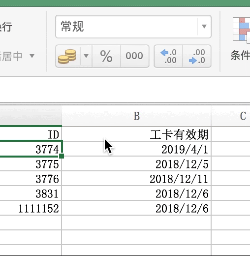 那么当有效期单元格的类型是日期和自定义的时候,我们拿到的数据是像下图一样