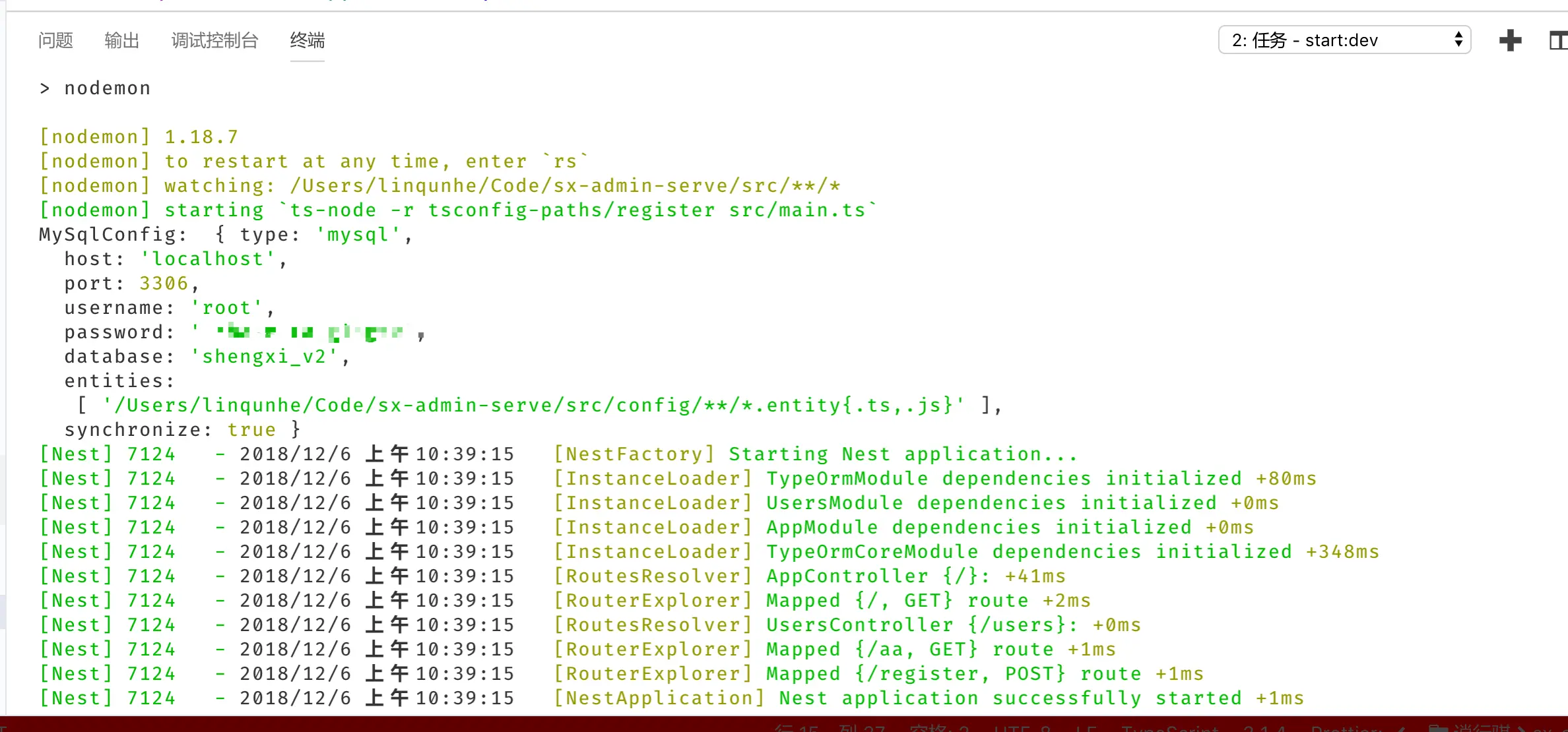 温馨提示: 若是要用__dirname,确保配置文件在根目录,否则请改用相对路径,不然会找不到实体