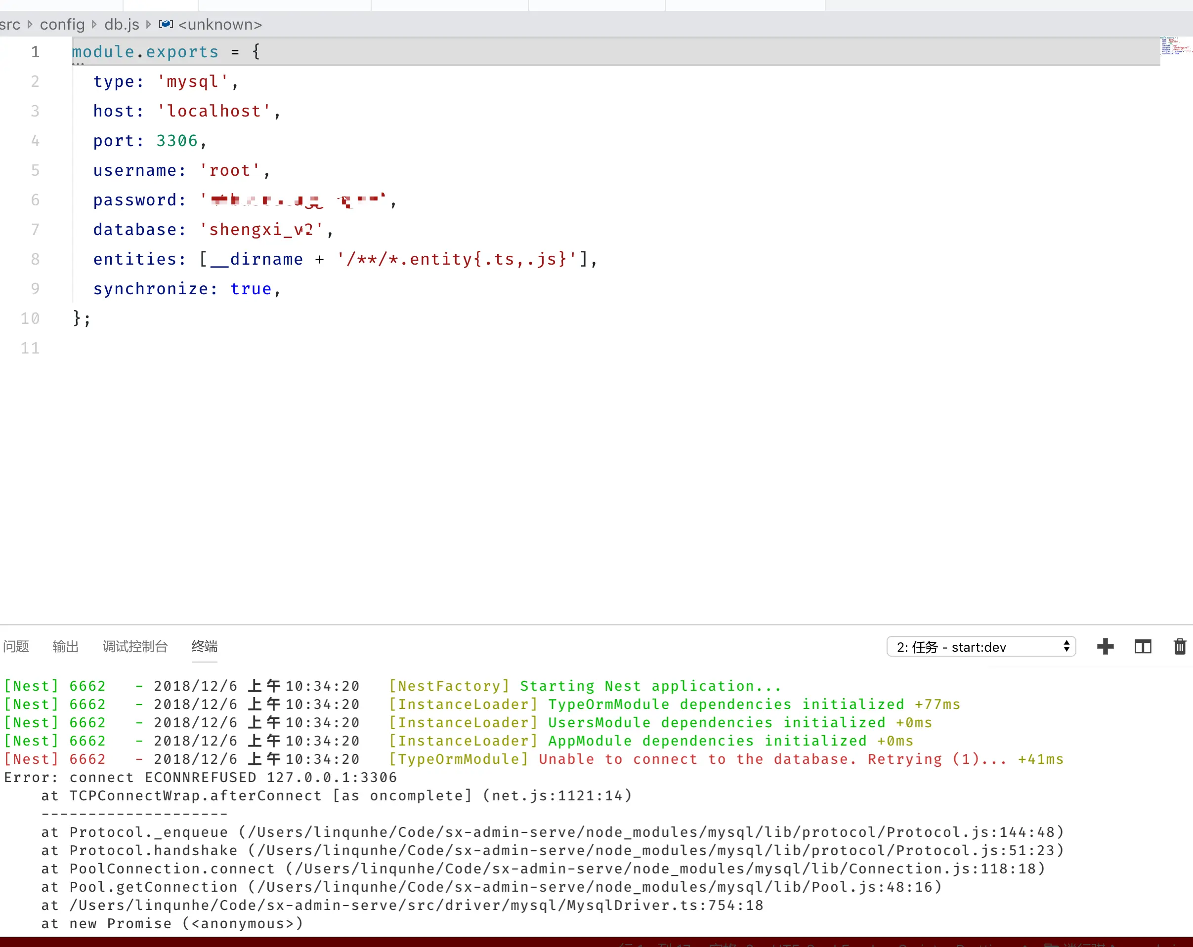 我把数据库链接的配置文件分离出来,不能用export default