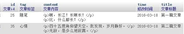 后台那边搞定了,就通过phpMyAdmin建了一个MySQL数据库,建立了一张表,存放文章的各种信息,博客的基本功能其实就是在这张表上面折腾。