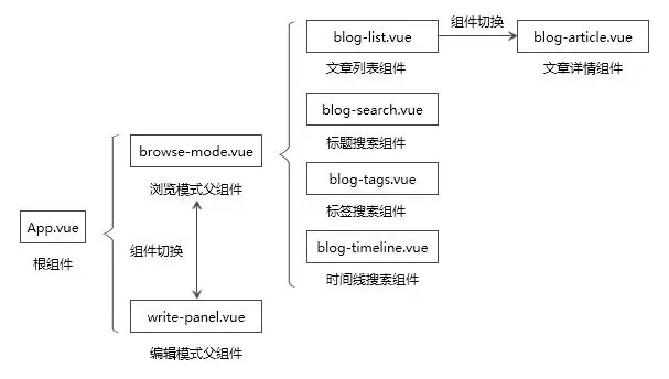 blog-head.vue作为导航栏,通过<router-view>切换“浏览模式”和“编辑模式”。