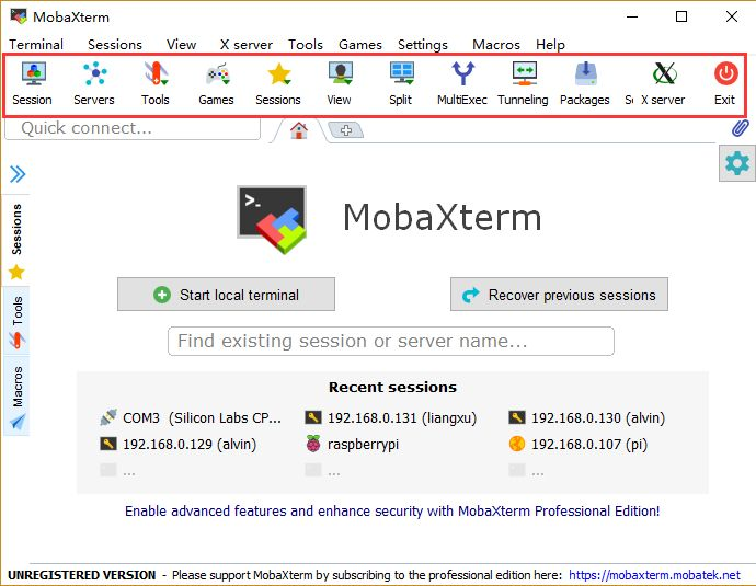 功能十分强大,支持SSH,FTP,串口,VNC,X server等功能;