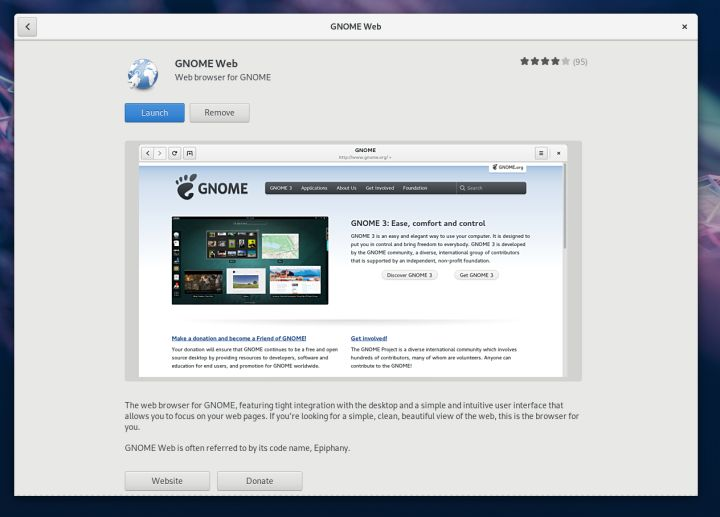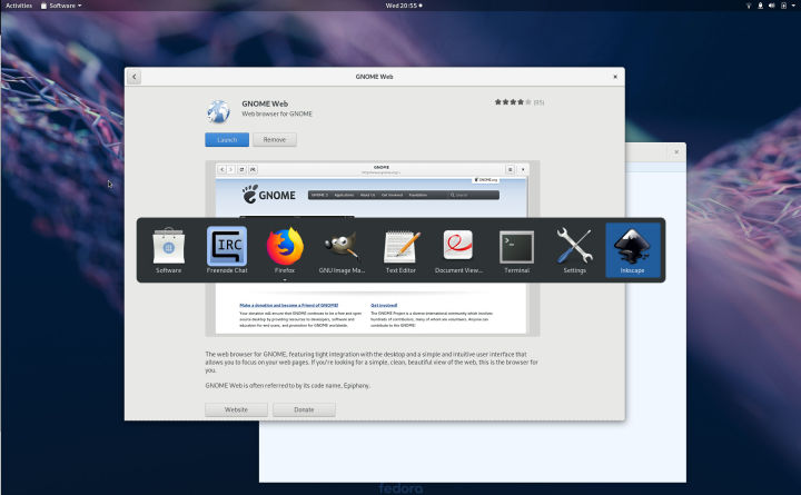 GNOME Web 未包含在默认的 Fedora 安装中。要安装它,请在软件中心搜索 “web”,然后安装。