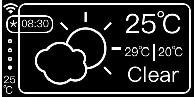 由于显示的信息一个屏幕肯定不足够,所有设计成上下轮播的卡片展示。已足够显示,网络时间、今日天气、以及明日天气和少许的自定义信息。