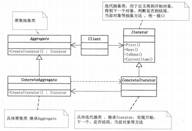 抽象迭代器: 迭代器接口,每个容器下都有一个该迭代器接口的具体实现