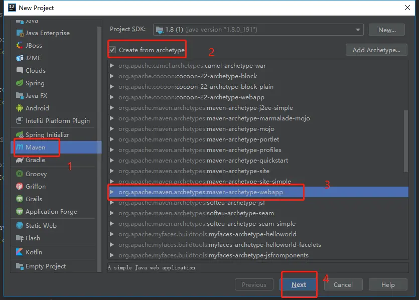 1、使用idea新建maven项目,步骤如图: