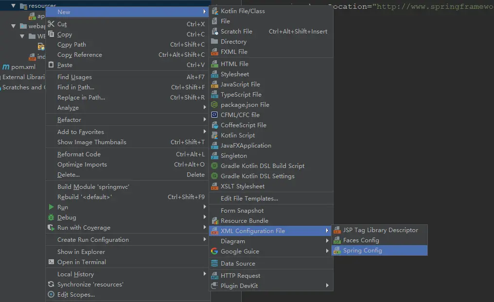 a、创建springmvc.xml文件:跟创建application.xml文件操作一样