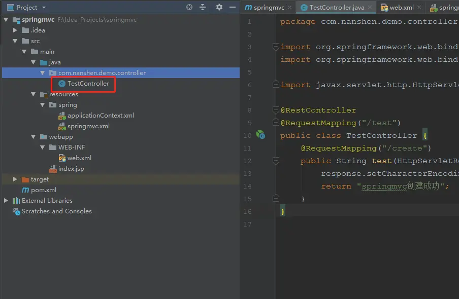 return "springmvc创建成功";