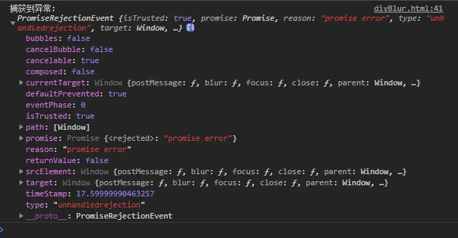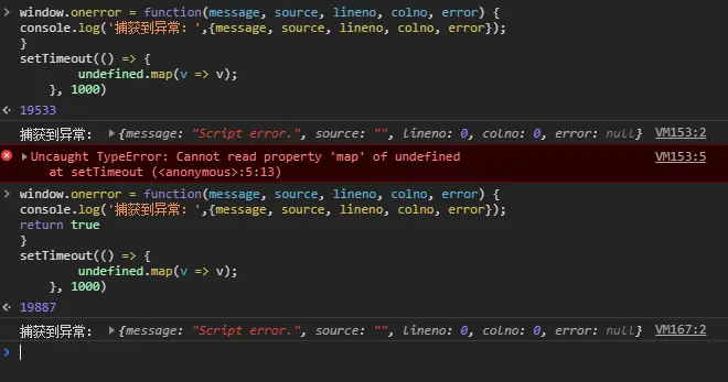 console.log('捕获到异常:',{message, source, lineno, colno, error});