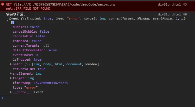 当一项资源(如图片或脚本)加载失败,加载资源的元素会触发一个 Event 接口的 error 事件,并执行该元素上的onerror() 处理函数。这些 error 事件不会向上冒泡到 window ,不过(至少在 Firefox 中)能被单一的window.addEventListener 捕获。