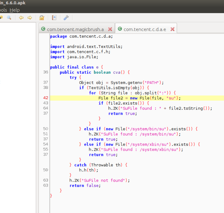 在wechat代码种有对系统path环境下的su文件进行检查,有代码为证