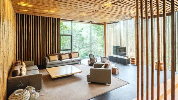 隈研吾:竹屋是我在中国的第一个项目。竹子在中国文化里具有重要地位,比如大家都知道的竹林七贤。我认为在中国文化里,一踏入竹林就代表进入了一个不同于城市的恬静世界。所以长城竹屋项目我也是想通过使用竹子,让大家一进去就能够体会到一种远离城市的安静。