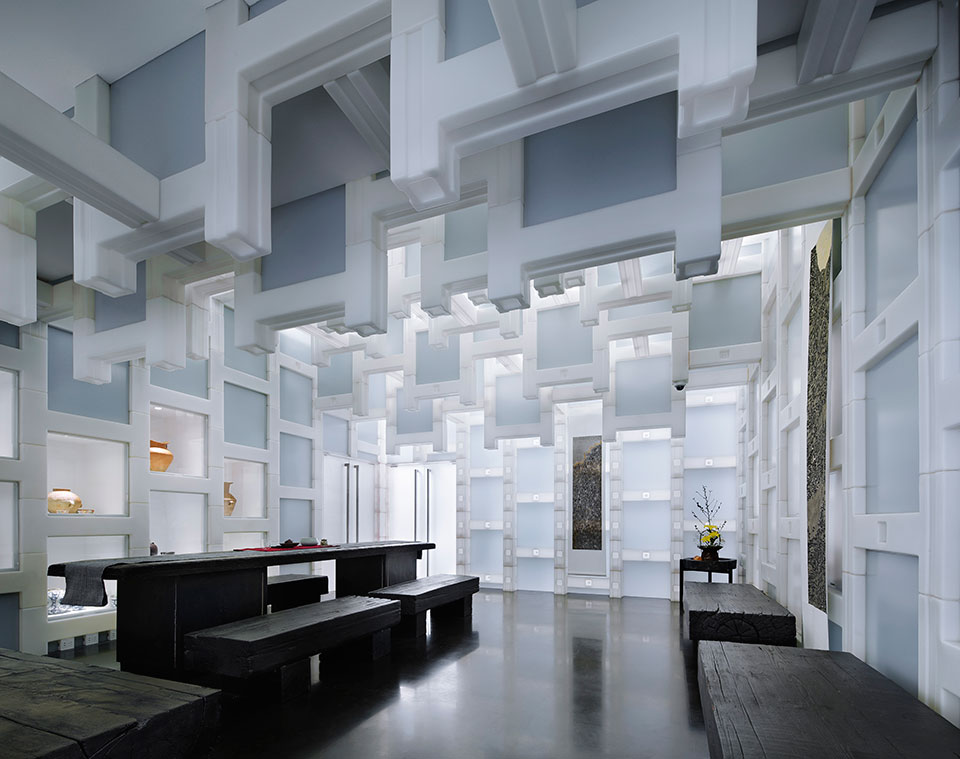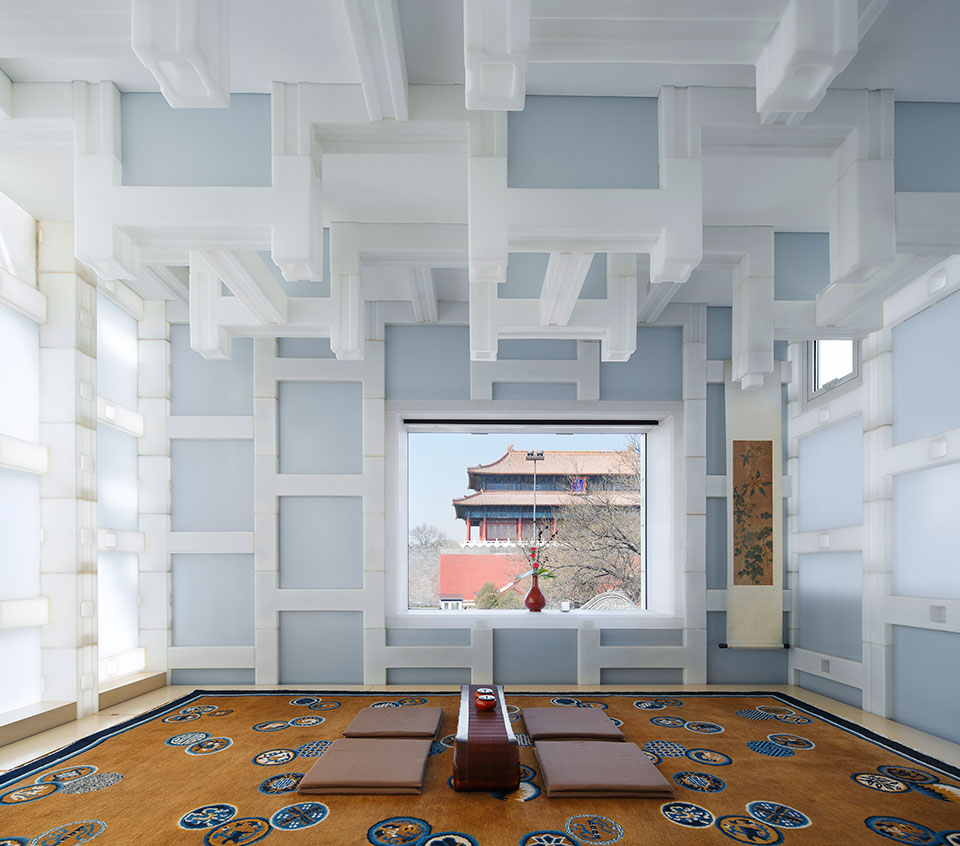 《隈研吾建筑事务》,地处中国北京东华门附近采用聚乙烯空心砖将一个四合院打造成为温和禅意的私人会所,这个250平方米的四合院采用了四种尺寸的浅色聚乙烯空心砖,这种现代版的砖石具有良好的热工性能,却又能像纸一样通过光线。