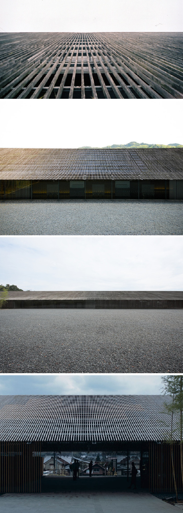 隈研吾:我在设计美术馆的时候遵从两个原则。一是重视美术馆的选址,必须和美术馆的主题相配。二是建筑物必须与美术馆中陈列的艺术品相得益彰。所以我们设计美术馆的时候都会以建筑和艺术品的协调共融为目标。其他的建筑家在设计美术馆的时候有很多只是单纯的做一个抽象的立方体设计,所以我们的做法可能还有些特殊。
