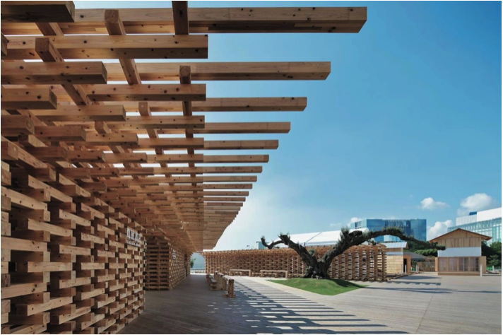 隈研吾:亚洲建筑本就源于木质建筑,所以要想使建筑适应、融合于这多雨的亚洲,采用树木进行设计是非常有效的方法。虽然亚洲在二十世纪混凝土建筑十分风靡,导致木建筑几乎消声觅迹,但我想让木建筑再一次登上亚洲舞台,所以在HOUSE VISION的时候我才大量使用了树木来进行设计。如果有机会的话我也会在其他项目里采用。