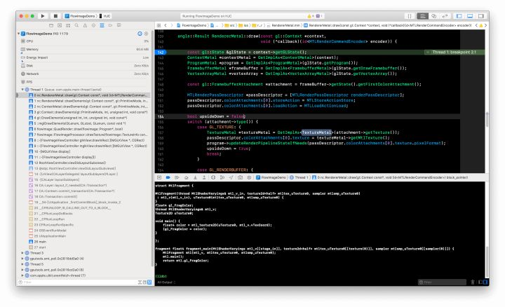 消除隐患,这是我的初衷,就提出要做 MetalKit 实现 GLES 这个兼容层。额外理由是,用 MetalKit 实现,性能或者会高一些。另外也可以采用 Xcode 自带的工具来调试 Shader。
