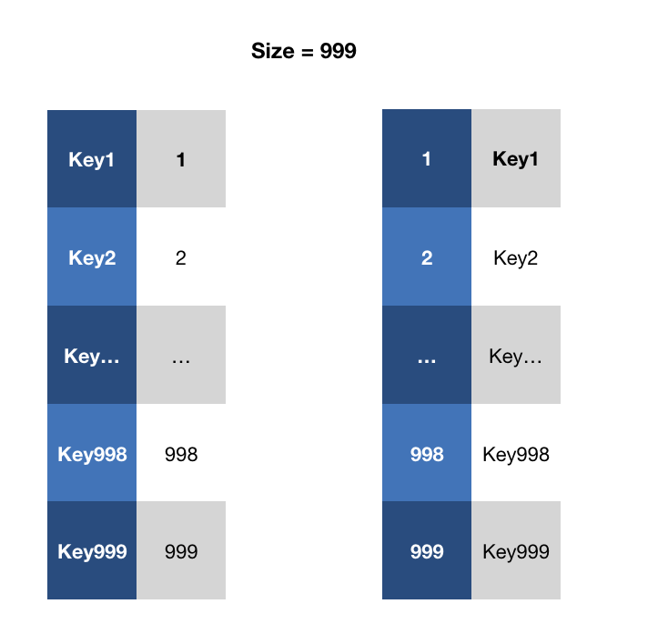 - 将size作为key,key23作为value,记录在第二个haskMap中
