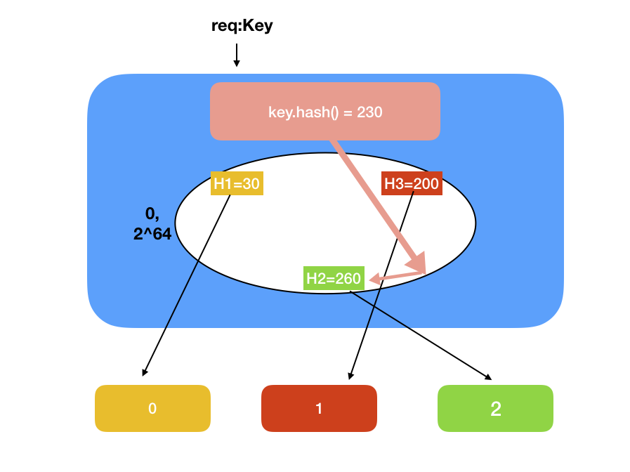 - 当进行读写操作时,对key进行hash,用二分的方式寻找顺时针方向最近的负载服务器并交付。