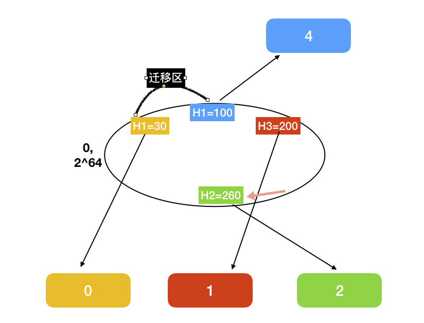 只需要将黑色部分数据从1号服务器迁移给4号服务器即可。