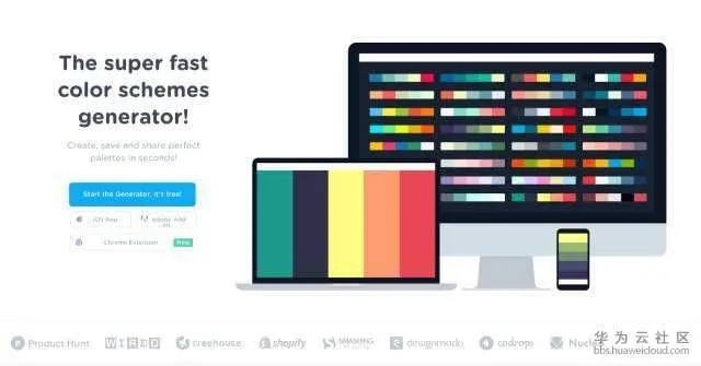 Coolor.co其实并不是Bourbon家族的成员,但你应该会喜欢它,这是一个免费的网站(移动端是收费的),在你指定一个主题色后,它会为你返回一组漂亮的包含5个颜色的配色方案,如果不满意直接一键切换就可以了,从此冒充设计师看谁还敢拦着你~
