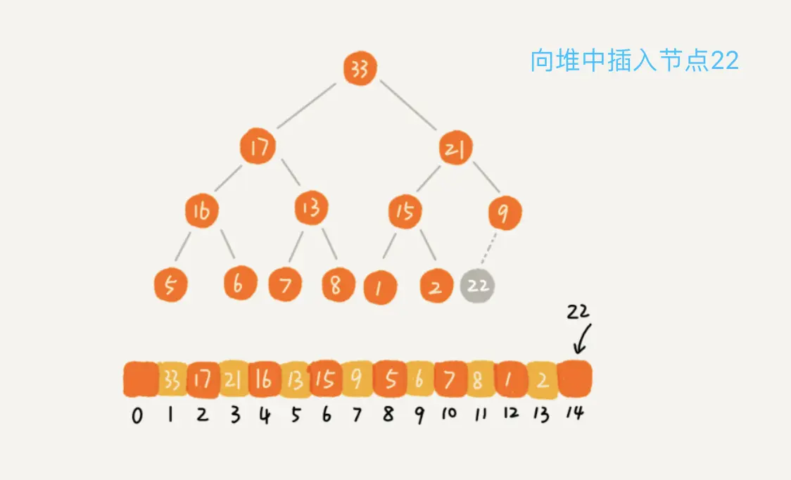 插入完全二叉树中,也就是插入到数组的最后一个位置。