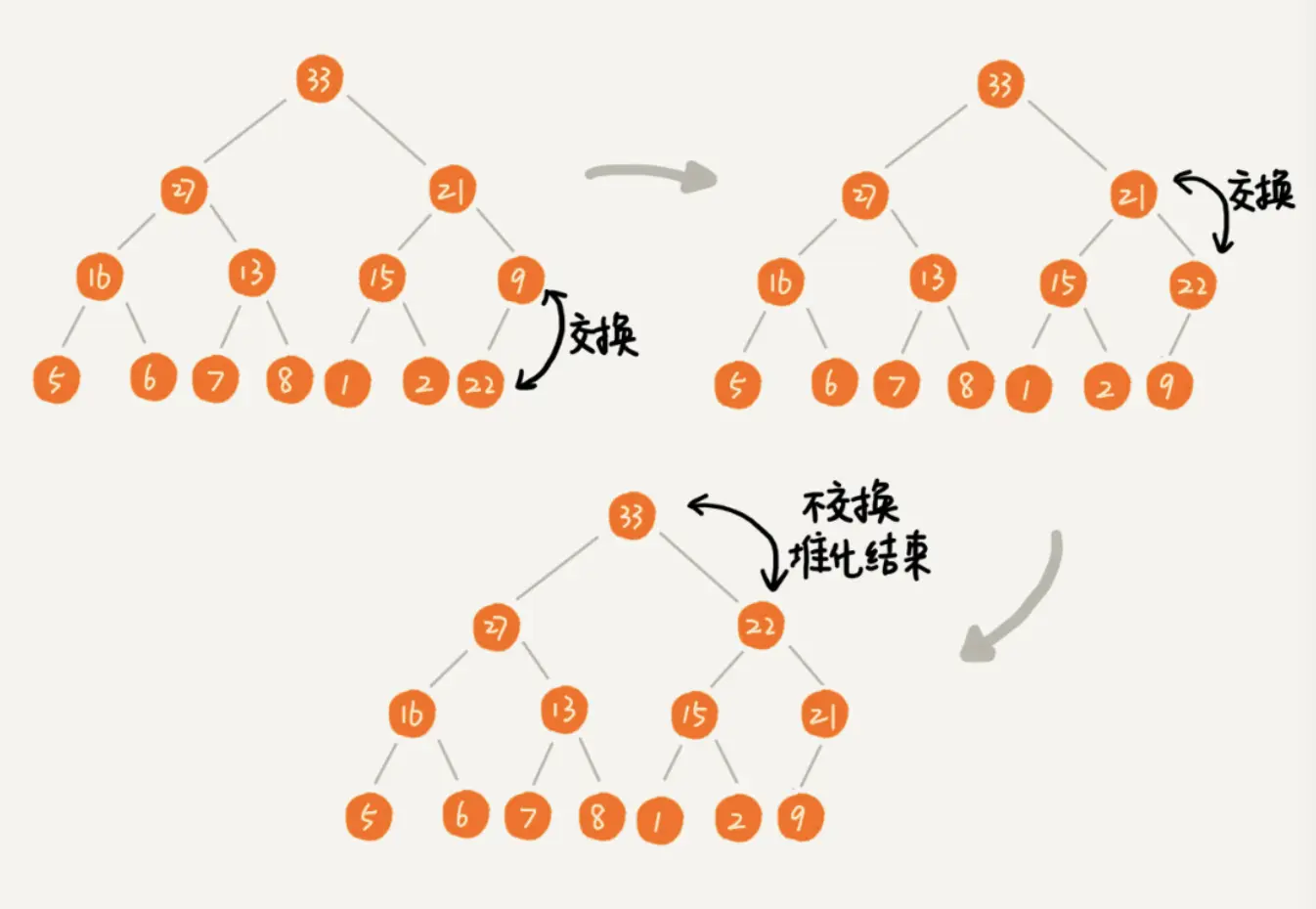 ② 从上往下比较交换直到符合规则