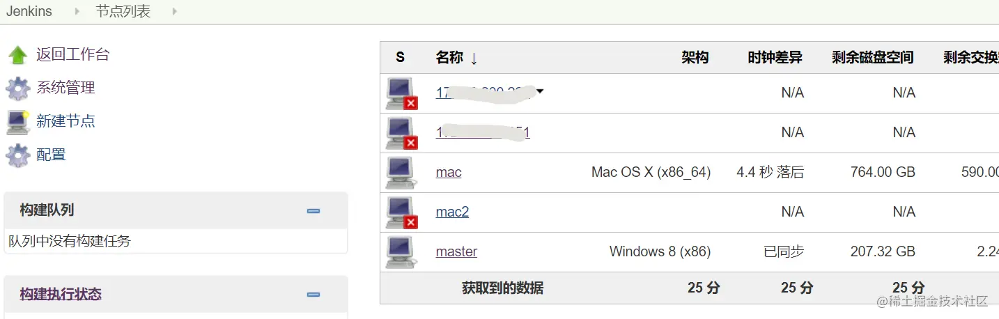到了某个时候,发现实在太麻烦了,就使用单个Jenkins,然后通过节点管理执行Jenkins任务。