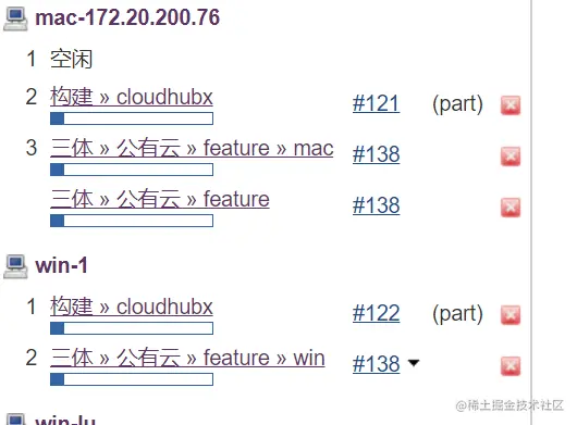项目开始之初,采用的Jenkins的方式就是:windows构建主机安装一个Jenkins,Mac主机安装一个Jenkins。当需要构建时候,手动点下运行任务。