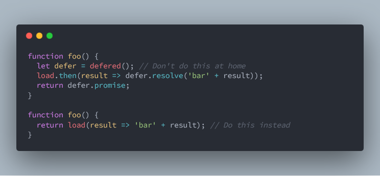 But you can use the Promise constructor to mimic this behaviour. Check this gist of mine to know more but remember — it’s bad!