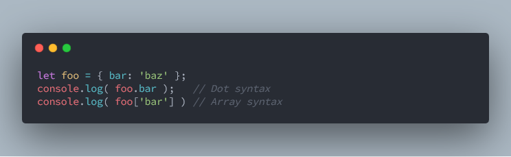 Objects help gather variables with the same topic under a unique variable. You end with an object containing many properties. There are two syntaxes to access an object property: dot and array syntax.
