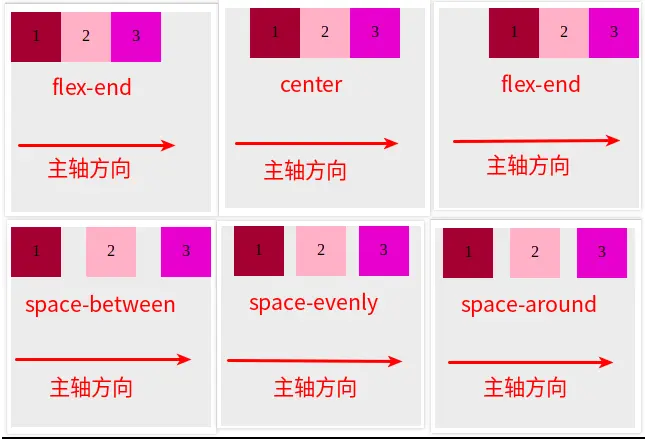 | flex-end | 项目在主轴上向主轴结束方向靠拢 |