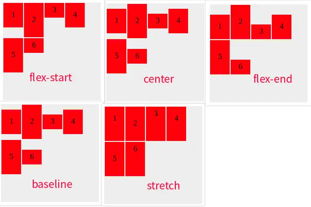 | flex-start | 项目在主轴上向主轴开始方向靠拢(默认值) |