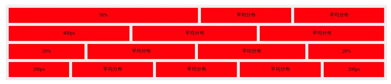 个别子项具有固定宽度其余项目平均分布(关键: flex-grow flex-basis 属性)