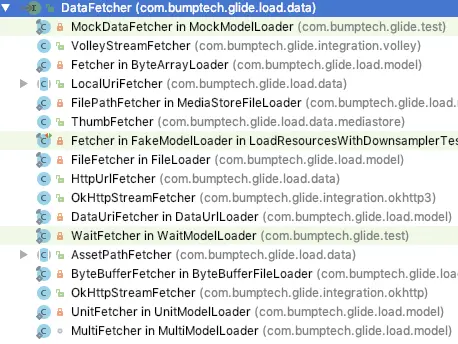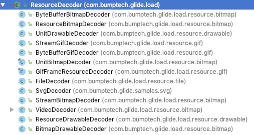 从上文关键类的介绍可以看到,Glide中有几个关键接口有非常多的实现。之所以有这么多实现类,就是因为Glide支持非常多的加载类型(见下图),不同的实现类在调度类的调度下,处理各自对应的类型,有条不紊。