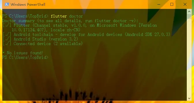 1.5 安装完成后,打开git bash或者powershell,运行flutter doctor检测一下你的环境是否ok,