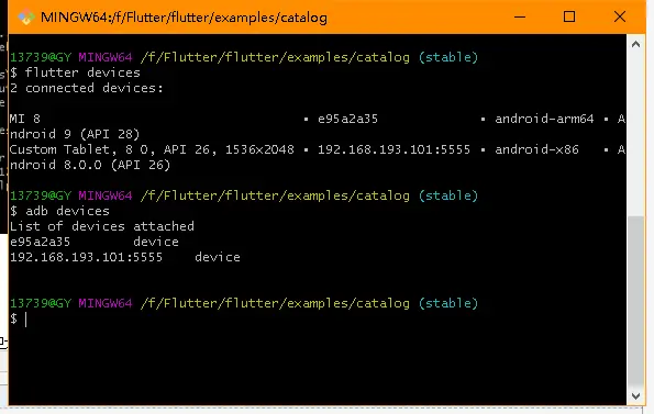 使用flutter devices或者adb devices都可以看你当前机器上的连接设备