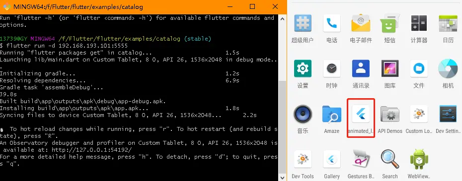 如图我已经将一个官方提供的demo安装到模拟器上