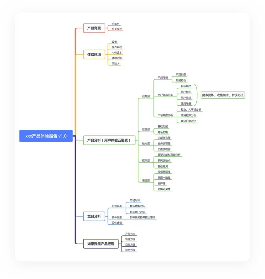 既然是一份图文报告,就必须具备可呈现、可阅读、可传承的相关条件,类似于我们的工作总结、项目复盘等,产品体验报告也有特定的输出框架和规范。