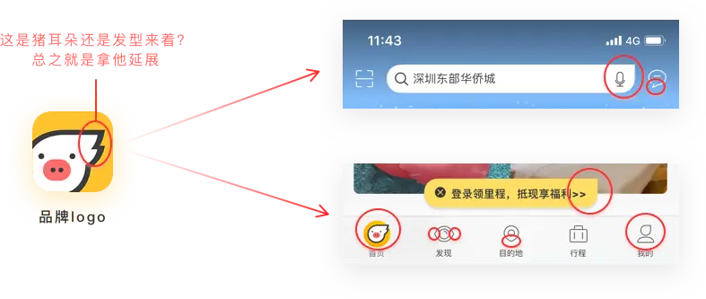 将这些形象元素融入到APP里面,创造属于自己的视觉效果,这是除功能以外寻找差异化的最佳方法。我举一个“飞猪”的栗子: