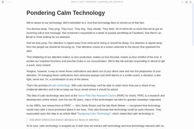 与 Ghostwriter 相比,你只能将你的文档保存为 HTML 或 PDF 格式。这个输出看起来也不是很糟糕。