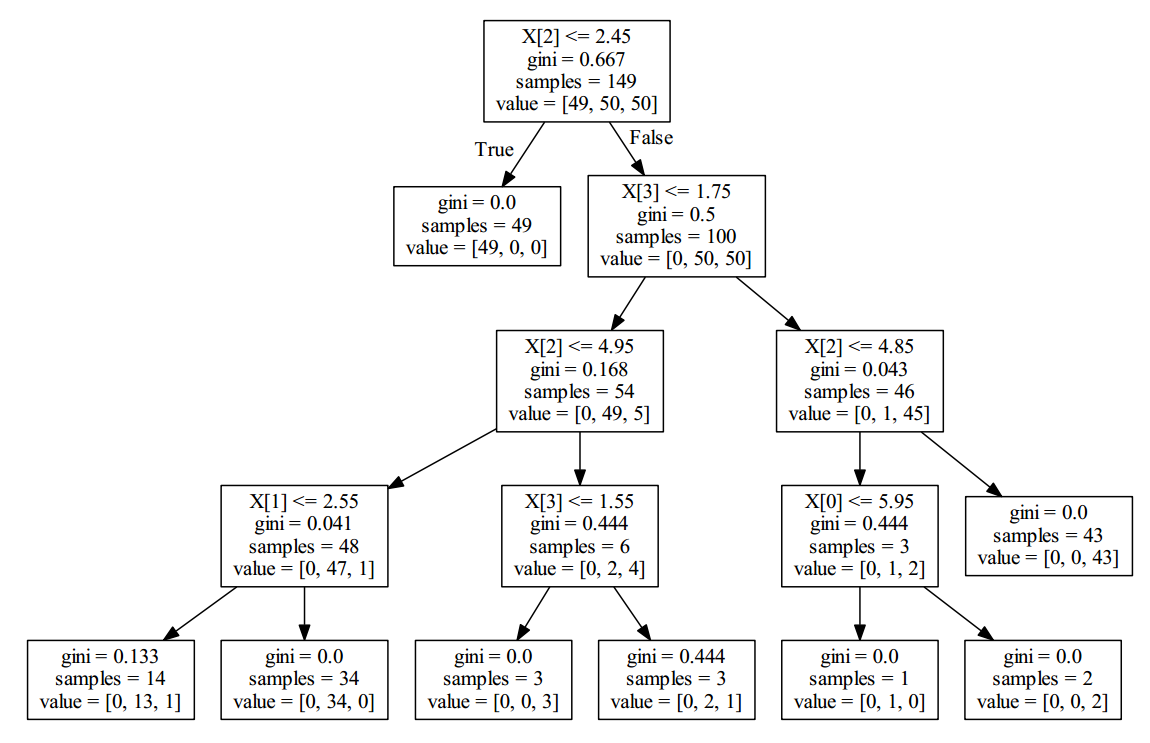 import sklearn.tree as tree from sklearn.externals.six import StringIO with open('C:\\ML\\MLData\\iris_dtc.dot', 'w') as out_file: out_file = tree.export_graphviz(decision_tree_classifier, out_file=out_file) -