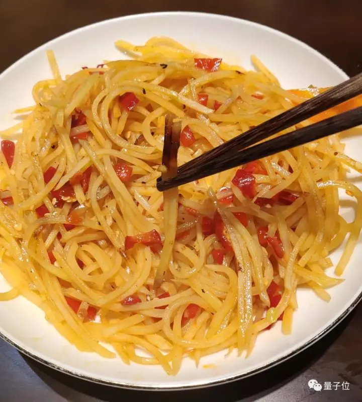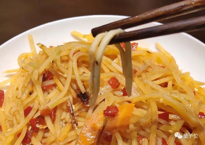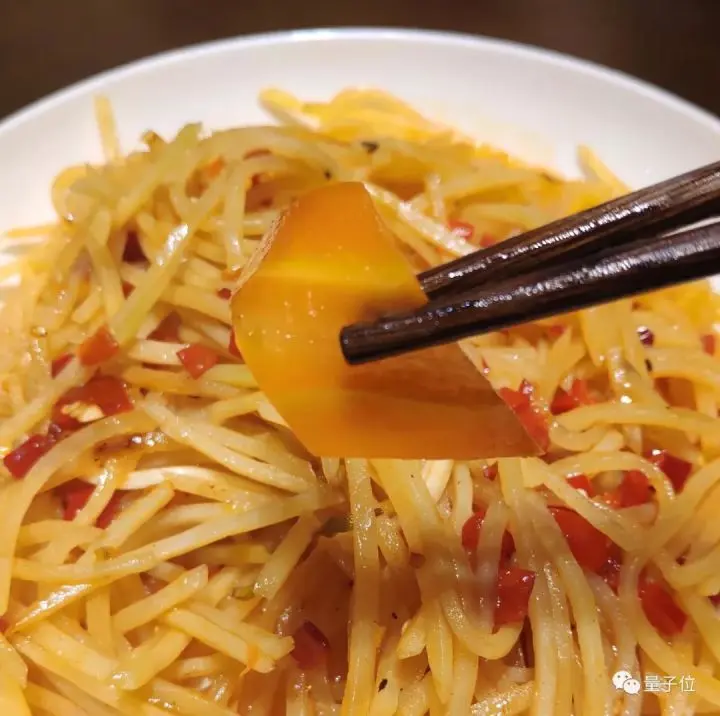 不过,吃着吃着,量子位发现土豆丝里混进了奇怪的东西:胡萝卜片。