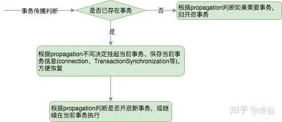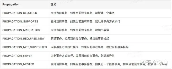 }- propagation是每次进入切面时均会判断,用于判断是否需要创建新事务等;