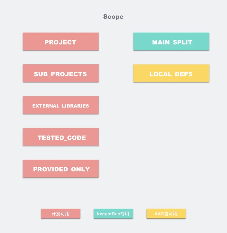 TransformManager中提供的几个常用的ContentType集合和Scope集合,如果是要处理所有class和jar的字节码,ContentType我们一般使用TransformManager.CONTENT_CLASS。
