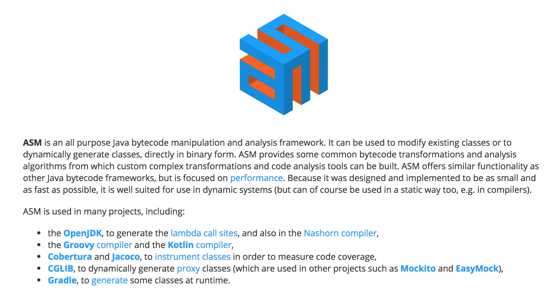 JVM平台上,修改、生成字节码无处不在,从ORM框架(如Hibernate, MyBatis)到Mock框架(如Mockio),再到Java Web中的常青树Spring框架,再到新兴的JVM语言Kotlin的编译器,还有大名鼎鼎的cglib项目,都有字节码的身影。