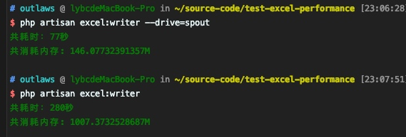 分别安装 Laravel Excel 及我们新发现的 Spout: