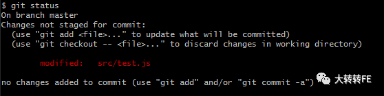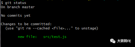 新添加的文件进入暂存区,从untracked未跟踪状态变为stage已暂存状态。接着文件进入暂存区之后,我们的修改就都可以被暂存区追踪到,我们修改一下新增加文件夹下面的test.js文件
